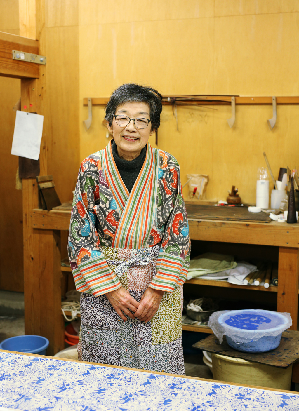 “He was strict when it came to work, but deeply dedicated to research and incredibly knowledgeable. He loved playful, original patterns. In fact, many of the stencil designs we use today were drawn by him and commissioned for carving. The world of Mitsuhashi Kobo’s motifs is something he really built.