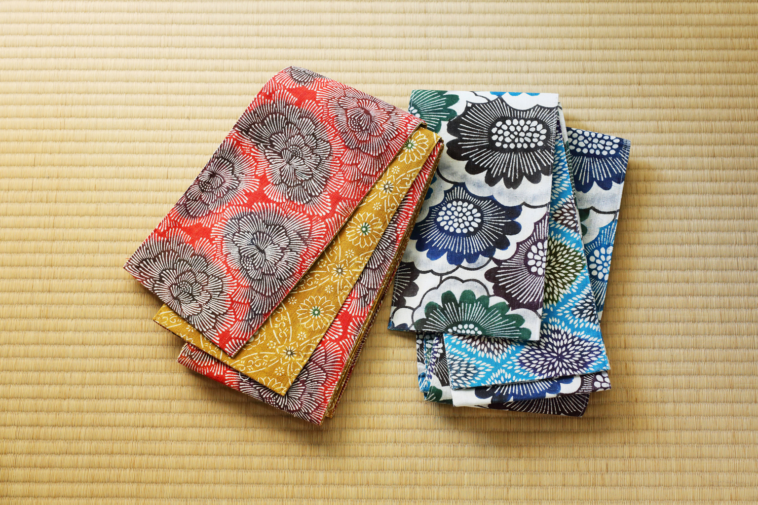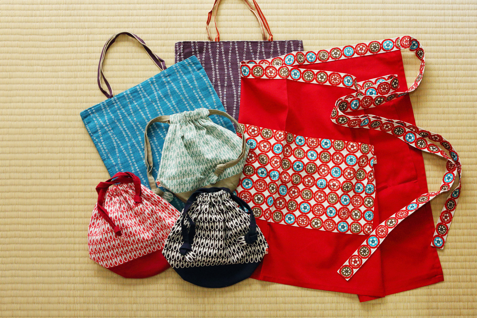 Mitsuhashi Kobo also produces kata komon lifestyle goods, such as café aprons, drawstring pouches, and tote bags, that blend effortlessly into daily life. Their modern patterns and styling have won many fans.