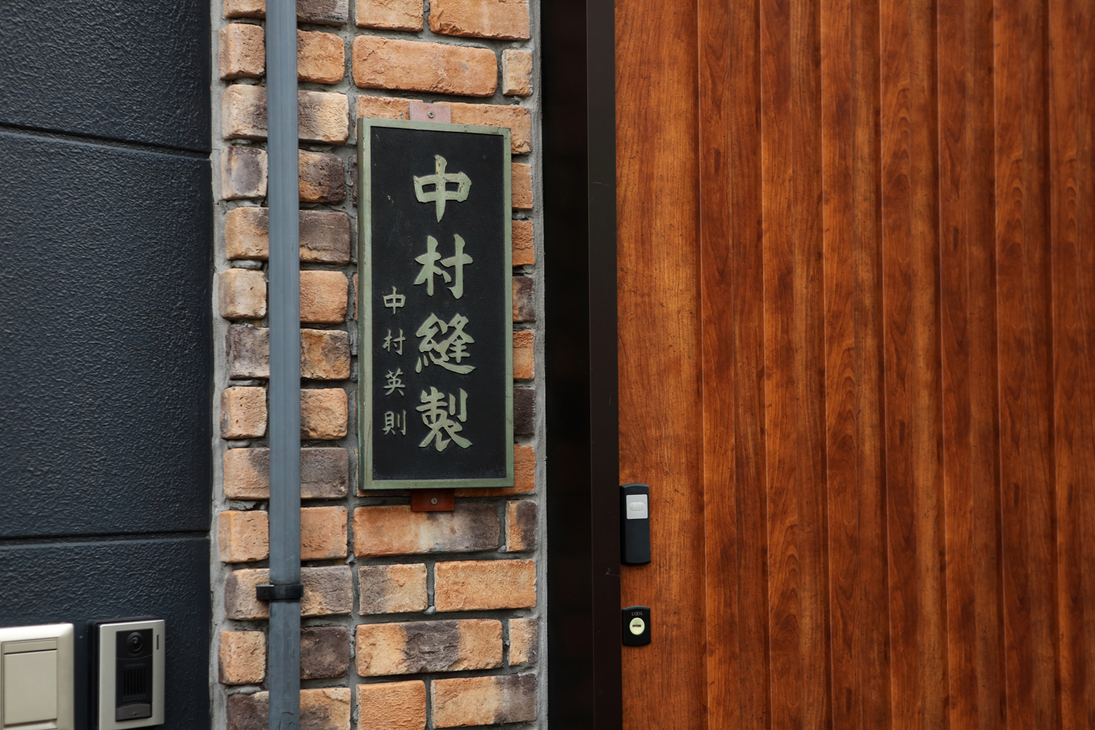 The sign outside Nakamura Hosei radiates quiet dignity. Beneath the company name is the name of founder Nakamura Hidenori.