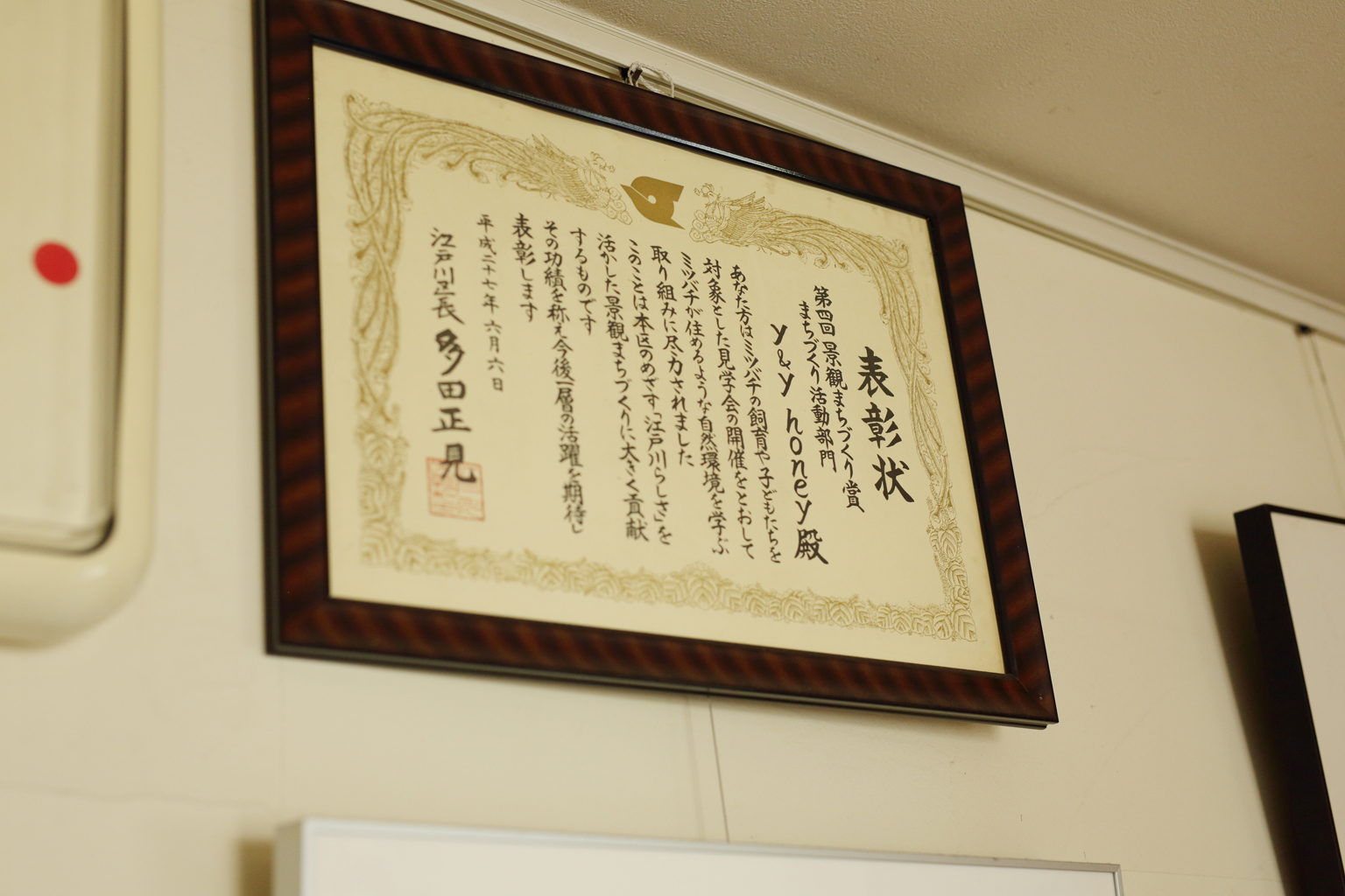 For his work educating Edogawa residents, especially children—, on the natural environments bees need to thrive, Suzuki received a Landscape and Townscape Award from the city.